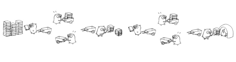 Four gophers in action for better flow, each doing one simple task.